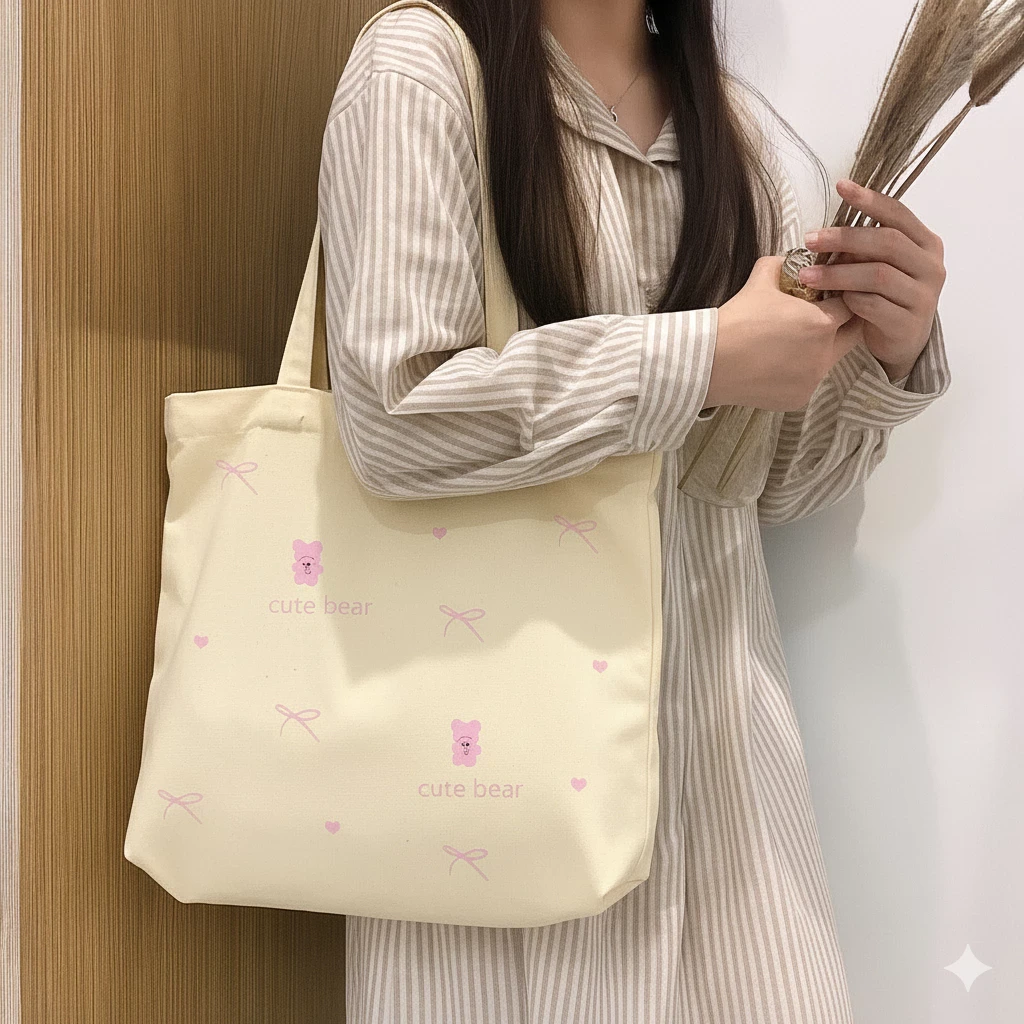Túi vải có khóa kéo miệng , túi vải đeo vai có ngăn phụ bên trong đựng laptop 15inch sách vở đi học